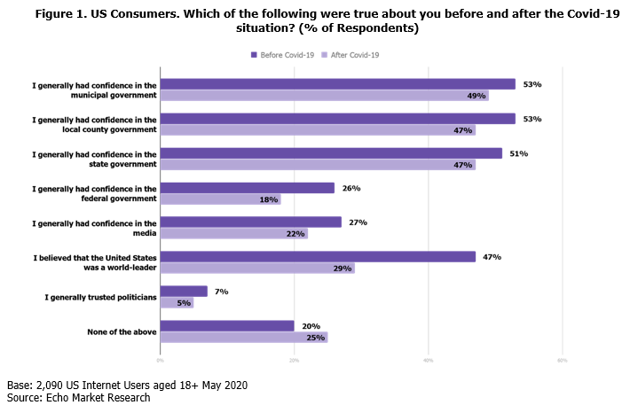 The belief that the United States is a world-leader has also been shaken more significantly, with 47% feeling this way before Covid-19 and only 29% now.